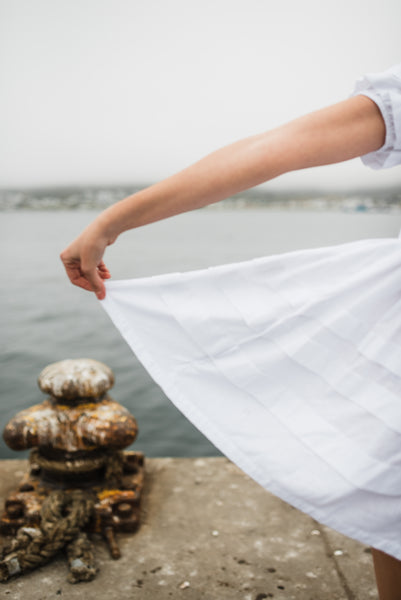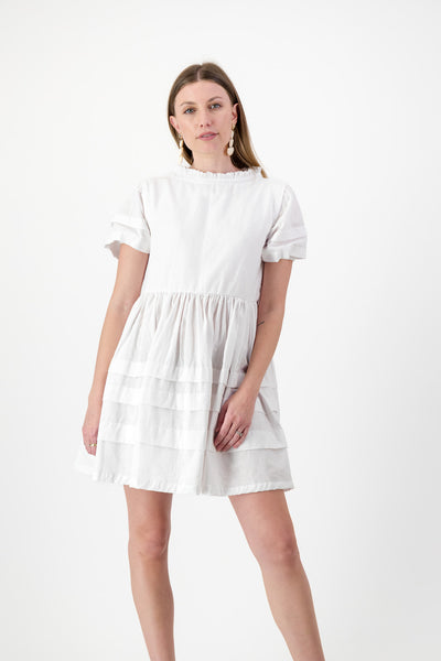 Cloudlight Mini Pleat Dress — White Cotton Linen