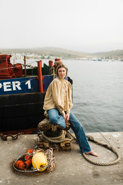 A soft moment before nightfall — earthy calm, quiet confidence, effortless form.