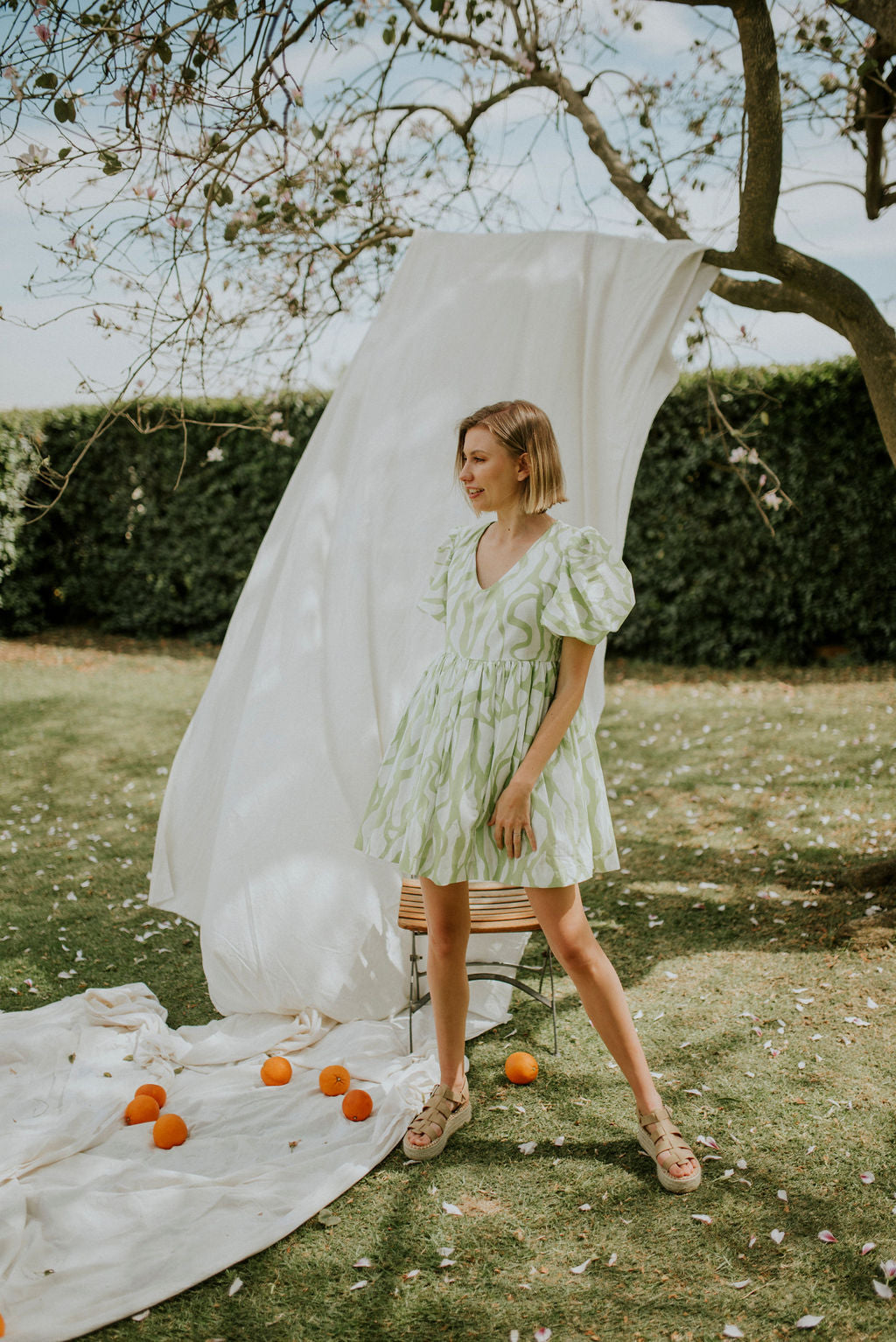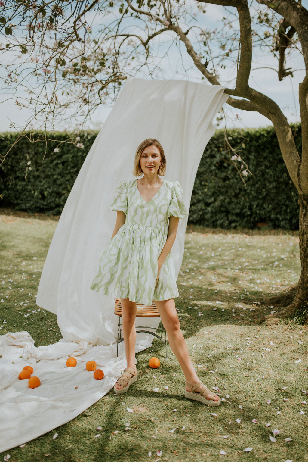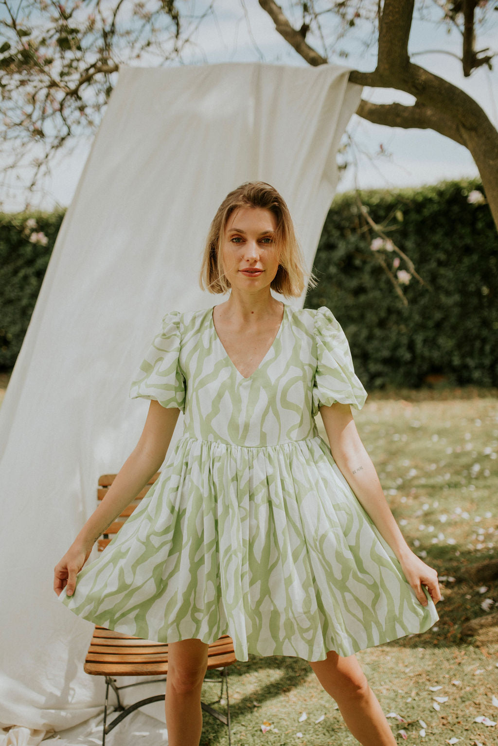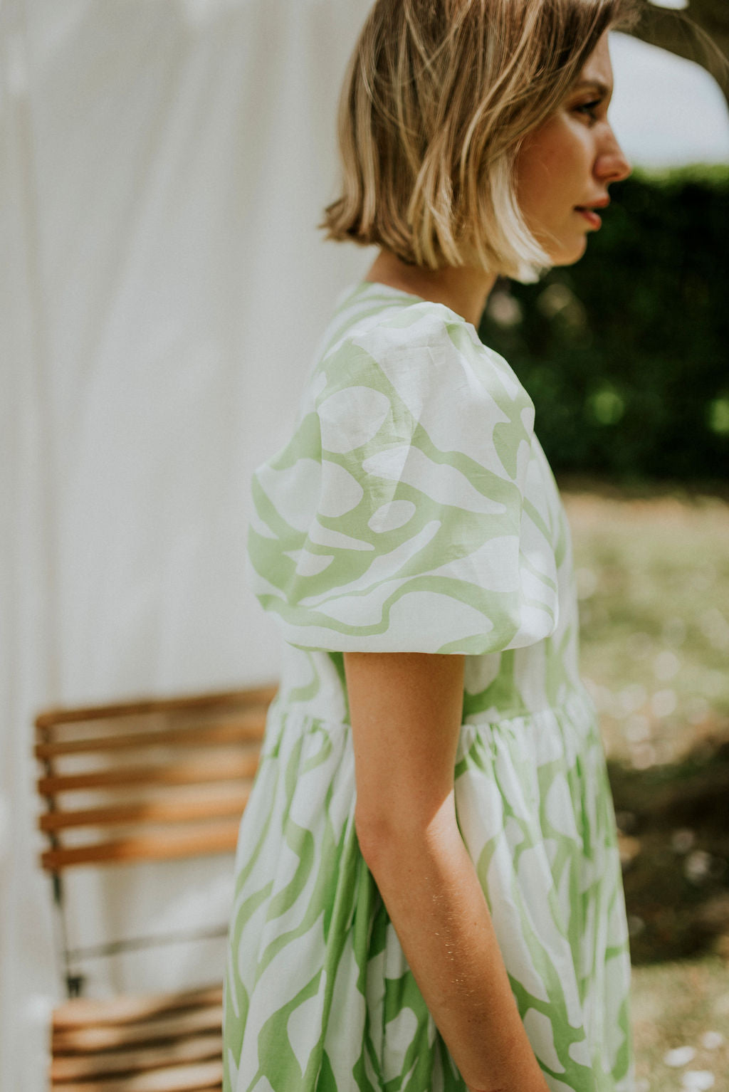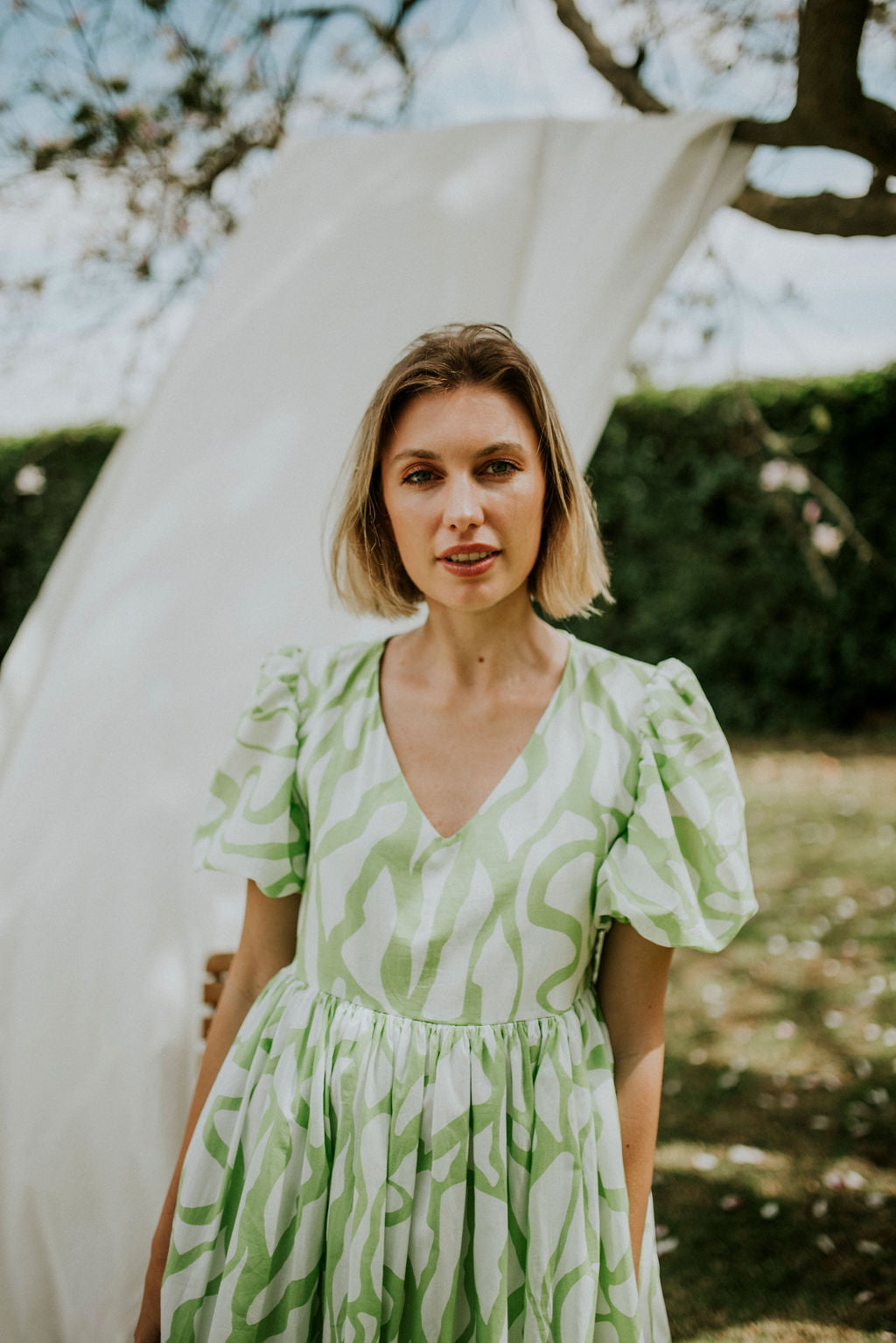 Lime and white printed cotton voile (Light , durable and incredibly breathable.)
