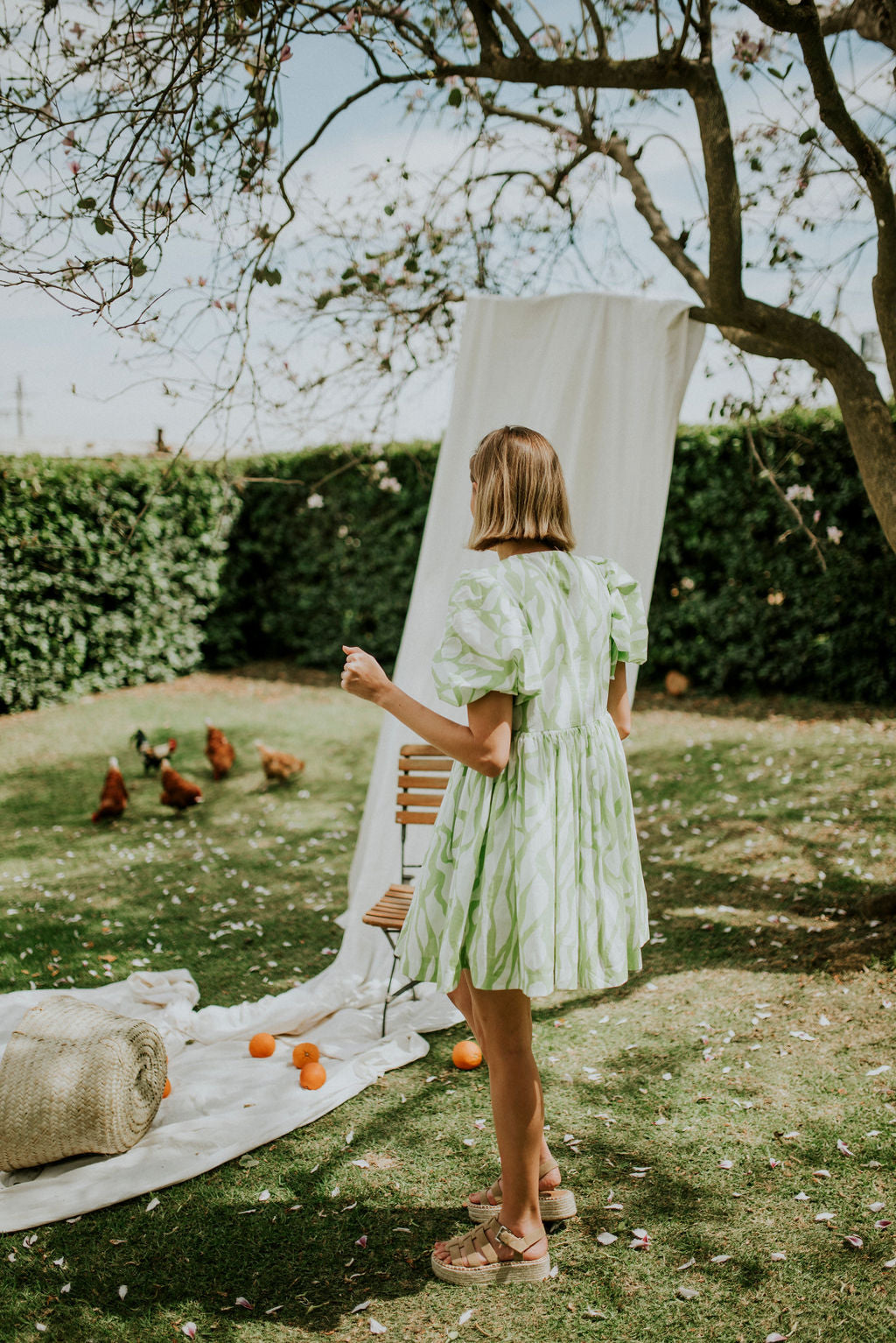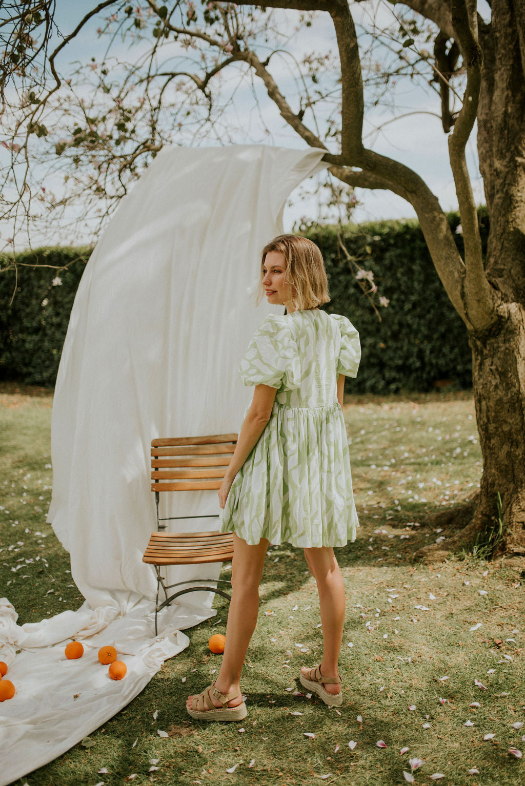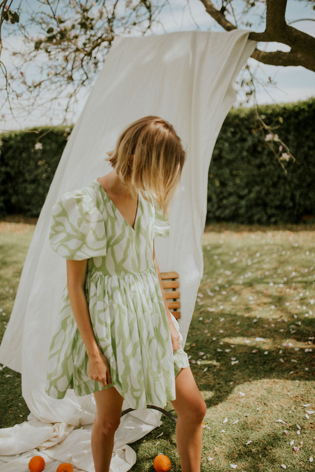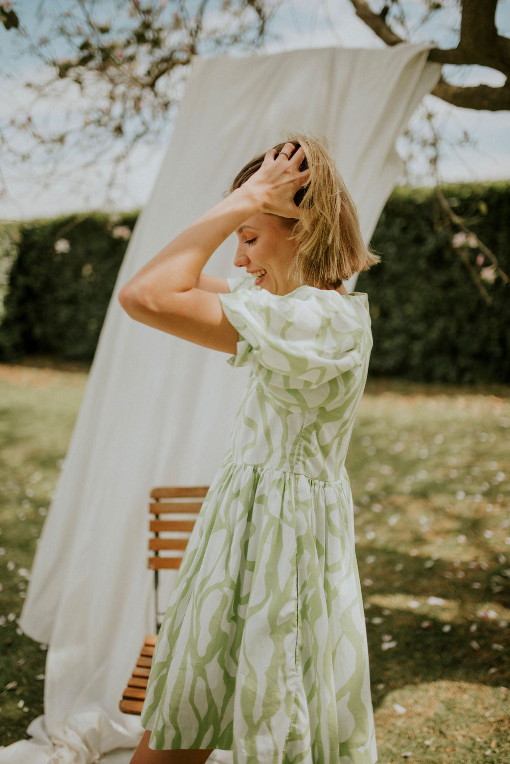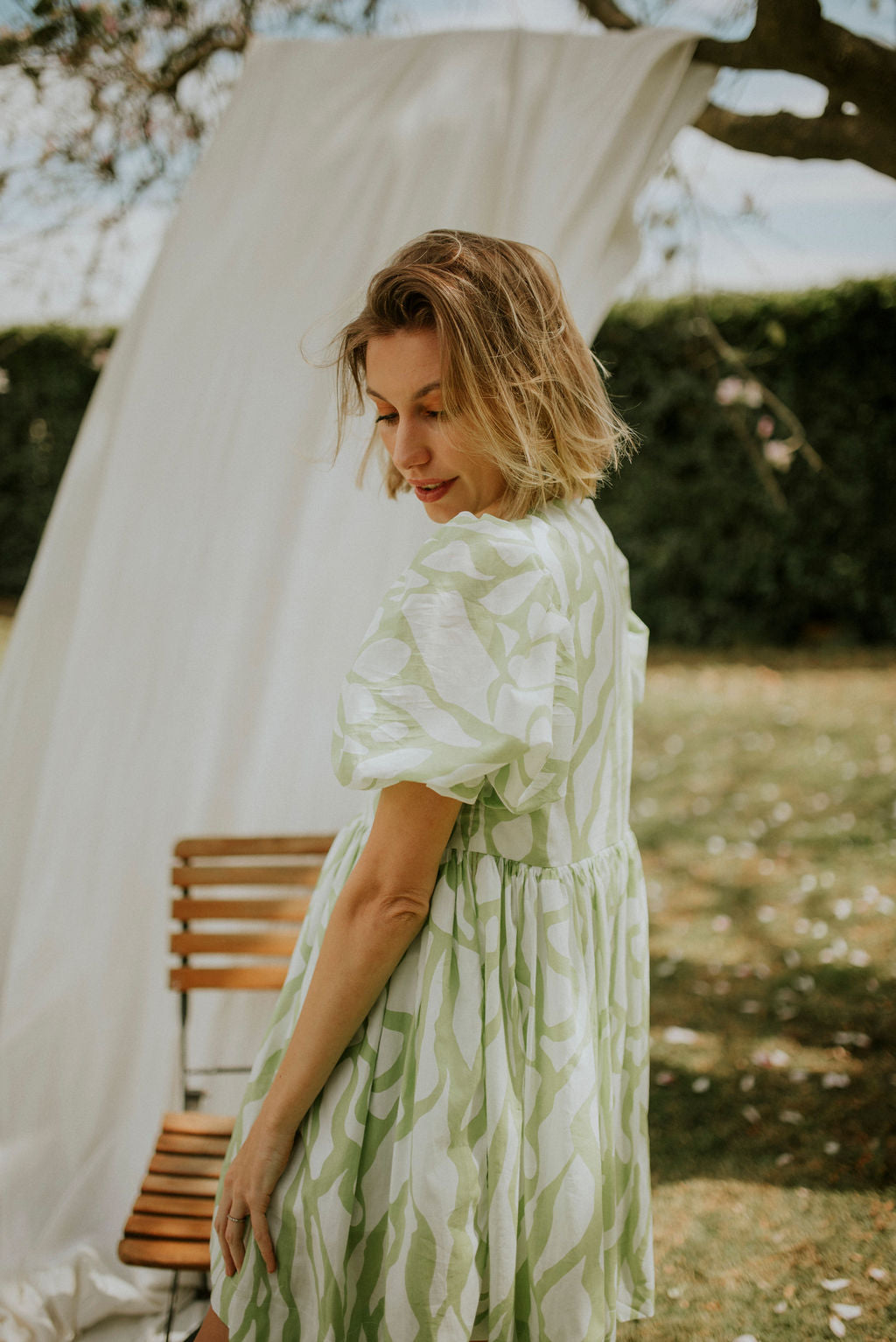 Lime and white printed cotton voile (Light , durable and incredibly breathable.)