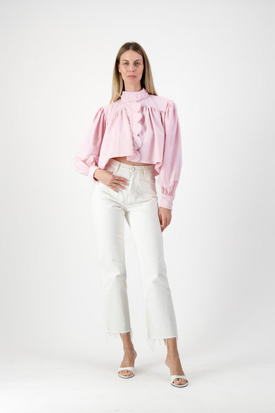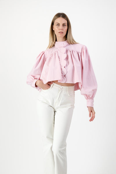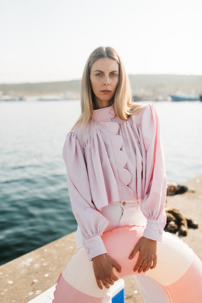 The Light Pink Scallop Jacket brings softness and sculpture together in one elevated silhouette.