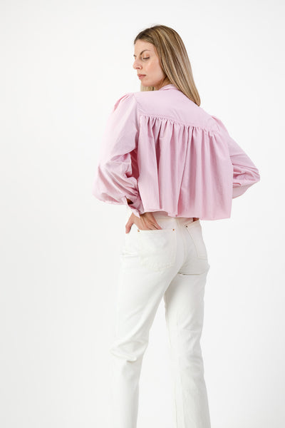 Voluminous puff sleeves taper elegantly into cuffs, while meticulous topstitching along the front and back yoke refines the look. Fully lined for comfort and movement, this design radiates modern femininity — structured yet free.